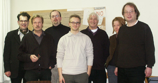 The participants of the group are Dr. Thomas Burkart, Prof. Dr. Harald Witt, Heinz Schramm, David Ulrich, Prof. Dr. Gerhard Kleining, Annerieke Diepholz, Peter Michael Mayer (from the left to the right), Prof. Dr. Otmar Hagemann, Nina Hugk and Prof. Dr. Friedrich Krotz and Markus Friederici (not shown in the picture). |